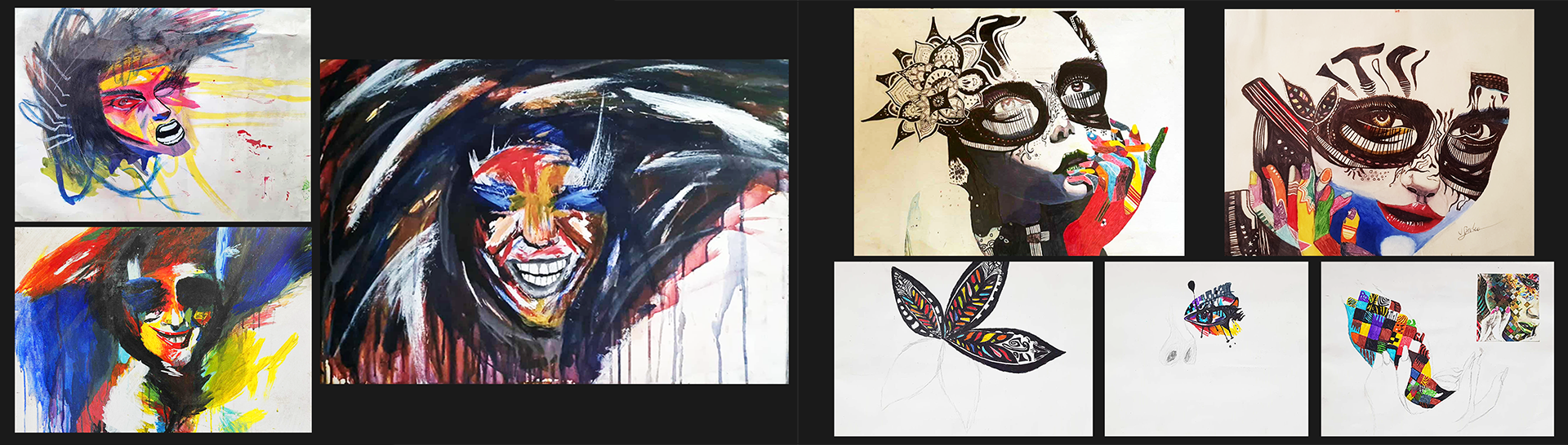 During my Sixth form studies I came across an artist known as Minjae Lee, his use of color and pattern work to define shape and form was fascinating. I loved the vibrant colors used as well as the stark contrast between the elements of the image. Initially starting out by studying small sections of his work I then went on to replicate some of his artwork to truly understand how he built these art pieces layer by layer, being careful to not allow the ink work to bleed into the paint. Once I was confident enough I was able to take what I learned and apply it to my own art pieces.
